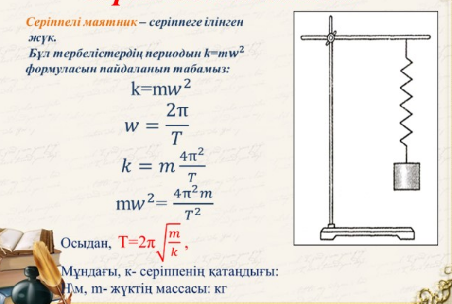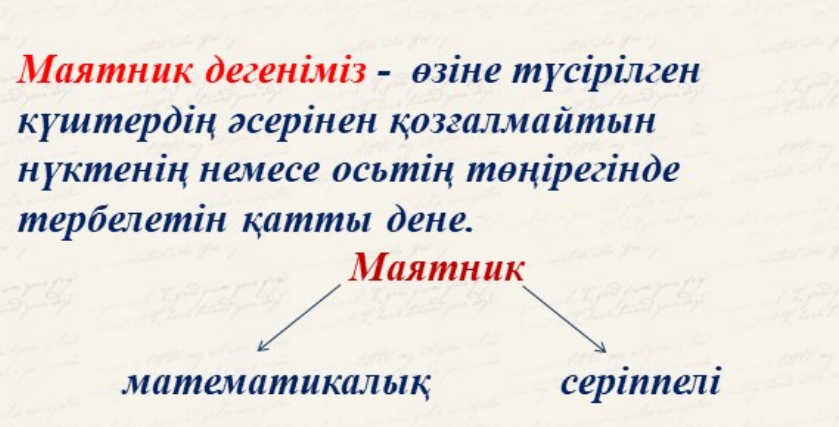 Математикалық және серіппелі маятниктің анықтамасымен және формуласымен танысады Дескриптор