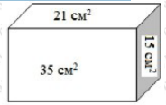 Тік бұрышты параллелепипедтің бір төбесі ортақ үш жағының аудандары: 35 см2 , 21 см2 , 15 см2 . Тік бұрышты параллелепипедтің көлемін табыңыз.