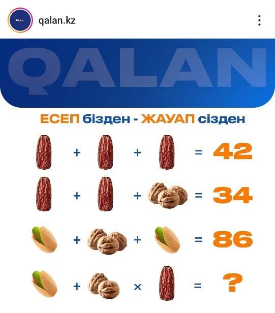 1.«Ойлан. Қолдан. Талда» кезеңі. Kahoot.it платформасында барлық қатысушыларға математикалық сауаттылықтан тест тапсырмалары беріледі. Әр дұрыс жауапқа 1 ұпай қойылады. Шарты ең аз ұпай жинаған 1 қатысушы шығады.(https://create.kahoot.it/details/5bbb20f2-7241-49ef-8a7e-424b2013cbca )
