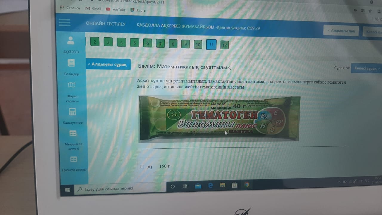 аптасына жейтін гематогеннің массасы.: