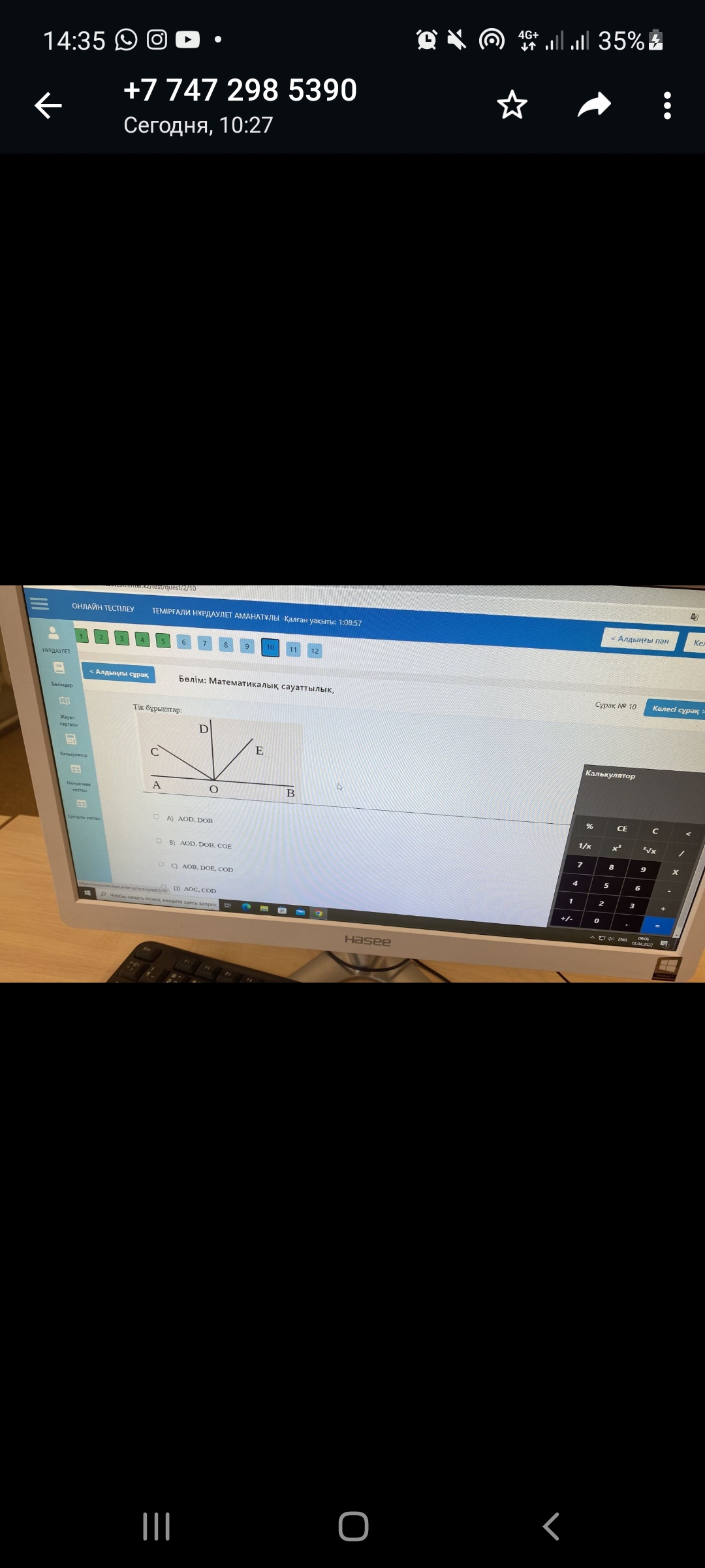 пен 10 дегенде, Асанның дұрыс жауабын