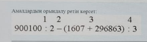 Амалдардың орындалу ретін көрсет: Ж 3, 1, 4, 2 |