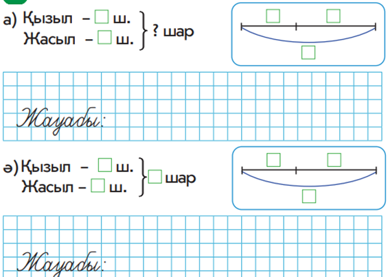 1.1.2.5.ондықтан аттамай бір таңбалы сандарды /20 көлеміндегі біртаңбалы мен екітаңбалы сандарды/ ондықтарды ауызша қосу және азайтуды орындау 1.5.1.3 қосынды және қалдықты табуға берілген есептерді талдау және шығару/кері есеп құрастыру және шығару. |