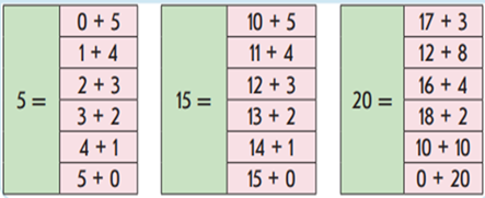 1.1.2.5 20 көлеміндегі біртаңбалы мен екітаңбалы сандарды ауызша қосу және азайтуды орындау; 1.5.1.6 қосу мен азайтуға берілген есептерге қатысты таңдаған амалдарын негіздеу, шығару әдісін түсіндіру. |