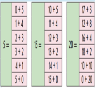 1.1.2.5.ондықтан аттамай бір таңбалы сандарды /20 көлеміндегі біртаңбалы мен екітаңбалы сандарды/ ондықтарды ауызша қосу және азайтуды орындау 1.5.1.6 қосу мен азайтуға берілген есептерге қатысты таңдаған амалдарын негіздеу, шығару әдісін түсіндіру. |