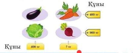 Бағалау критерийі: Есептерді шығару барысында баға, мөлшер (сан), құн арасындағы тәуелділігін пайдаланады Дескриптор: Заттың бағасы және саны бойынша олардың құнын табады. 2 балл |