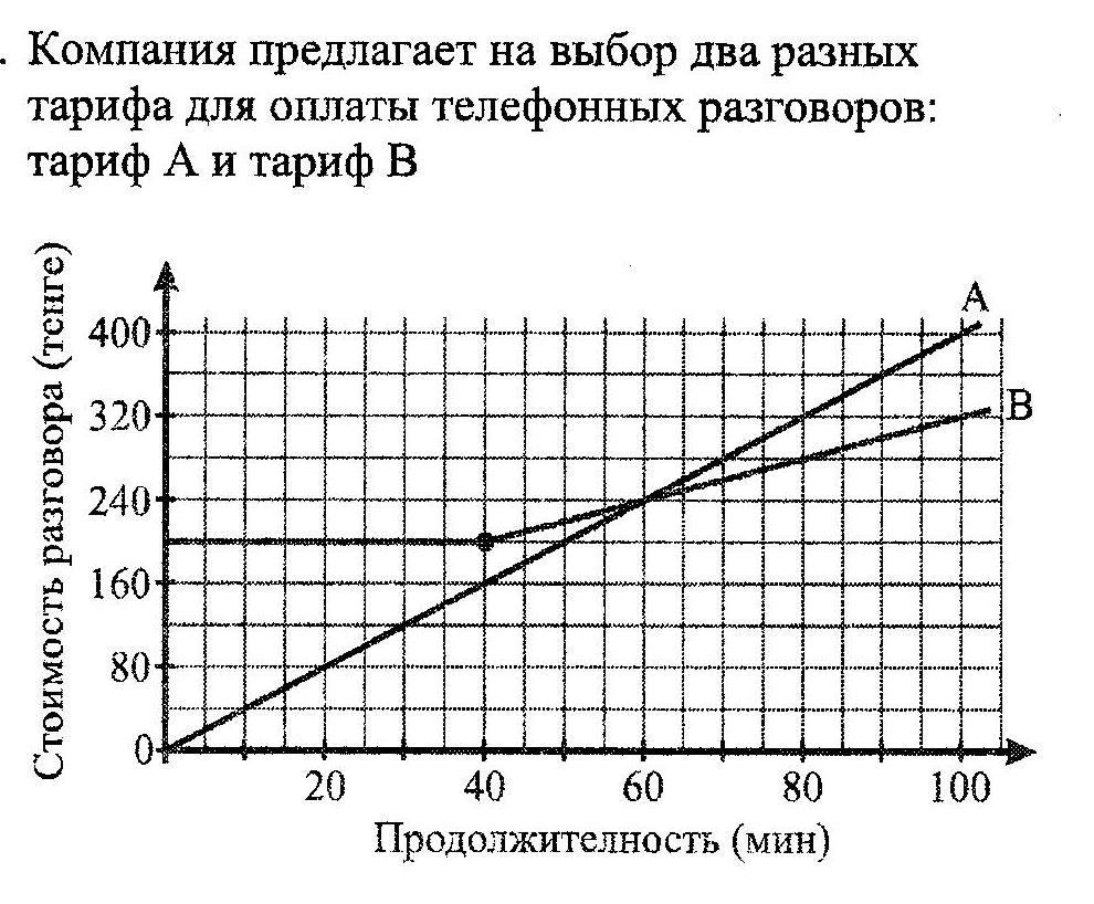 Определите по графику на сколько минут хватит 280 тг, если используется тариф А?