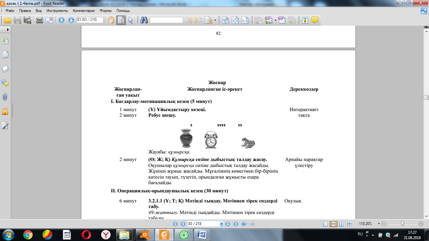 Ширату тапсырмасы. 3.2.1.1 (Ұ; Т; Қ) Мəтінді