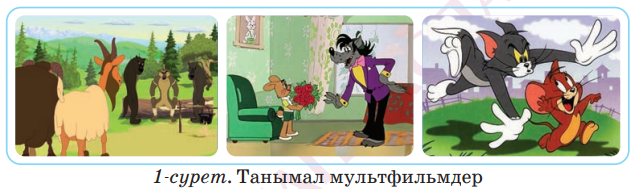 Ұйымдастыру кезеңі: 1.Оқушылармен амандасу. 2.Сабақтың тақырыбы мен мақсаттарымен таныстыру. Психологиялық ахуал қалыптастыру: «Бірлік» ойыны Топқа бөлу: «Көбелек» әдісі арқылы топқа бөлінеді Үй тапсырмасын тексеру Word мәтіндік редакторы мүмкіндіктерін оқиды Жаңа тақырыпты ашу: Қандай мультфильмді ұнатасың? • 1-суретте берілген танымал мультфильмдердің қалай аталатынын білесің бе? Осы мультфильмдер туралы ойыңды ортаға сал. • Мультипликация өнері туралы мәтін мен суреттен тұратын құжатты қалай жасауға болады?