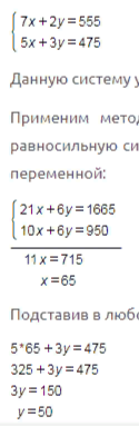 Дескриптор. Оқушылар: - Теңдеулердің сол және оң жақтарын мүшелеп қосады: - берілген теңдеулер жүйесімен мәндес жүйені жазады; - теңдеулерді қосу арқылы бір айнымалысы бар теңдеу алады; 1-ші айнымалыны табады; -екінші аййнымалыны табады; Жауабын жазады |