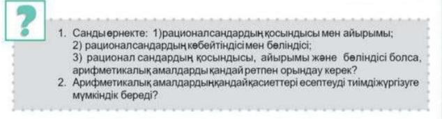 - Рационал сандарды қолданып мәтінді есептерді шығарады; |