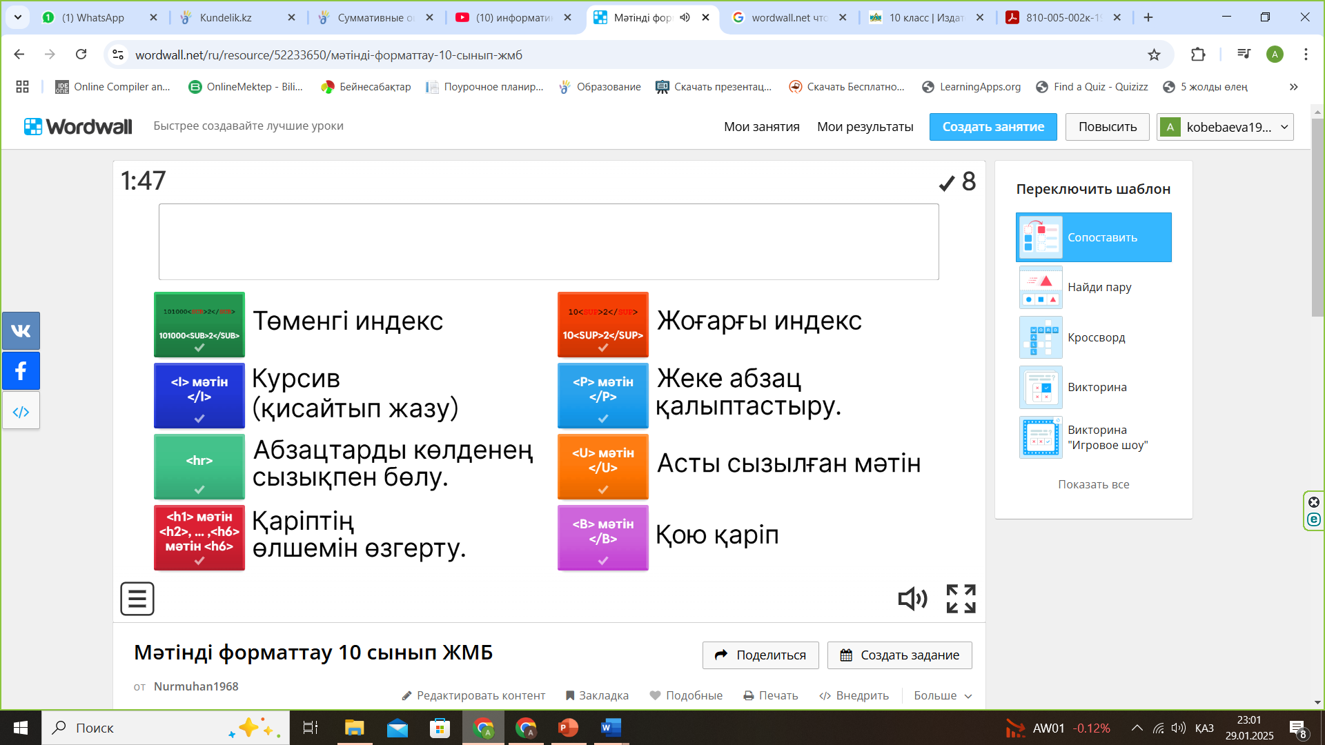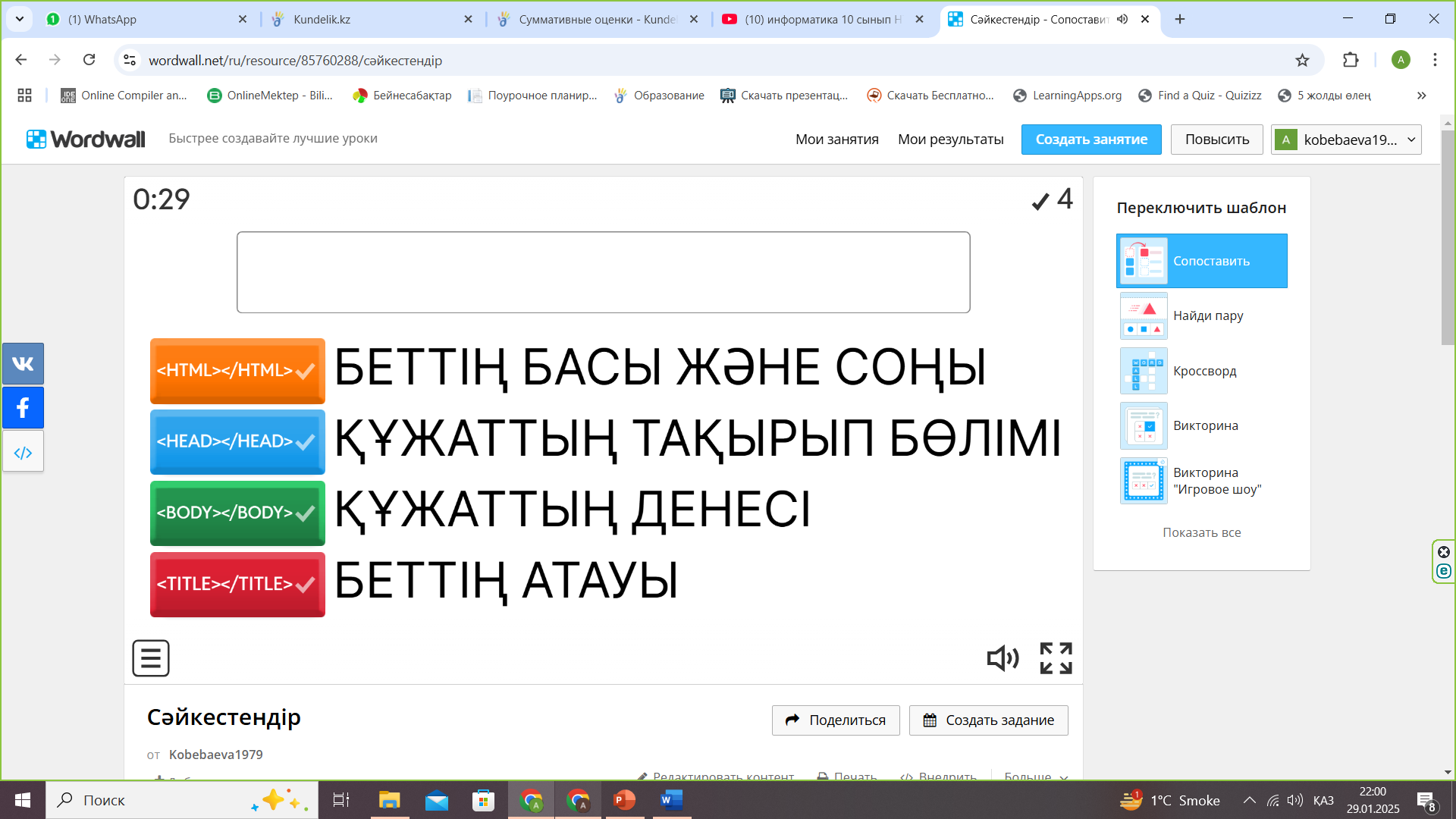 «Миға шабуыл» әдісі. Өткен сабақты пысықтау. Сәйкестендір.