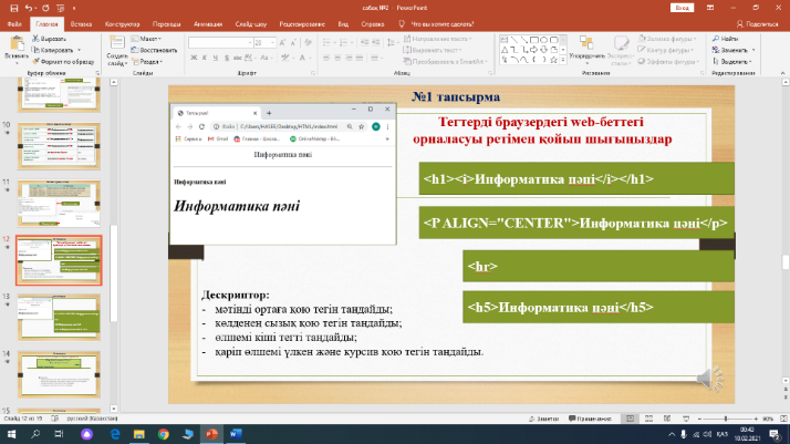 10.4.2.1 - Мәтінді форматтау тегтерімен танысып, web-парақшаларды әзірлеу.
