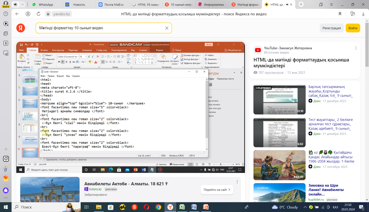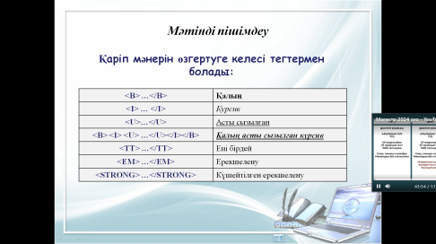 Мәтінді форматтау web бетте 10 сынып ҚМЖ