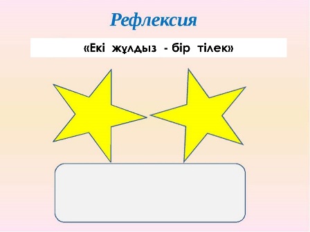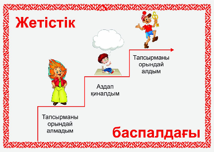 Сабақ соңында оқушы «Мен бүгін: нені білдім? Нені үйрендім? Нені әлі түсінбедім?» деген сұрақтарға жауап береді.
