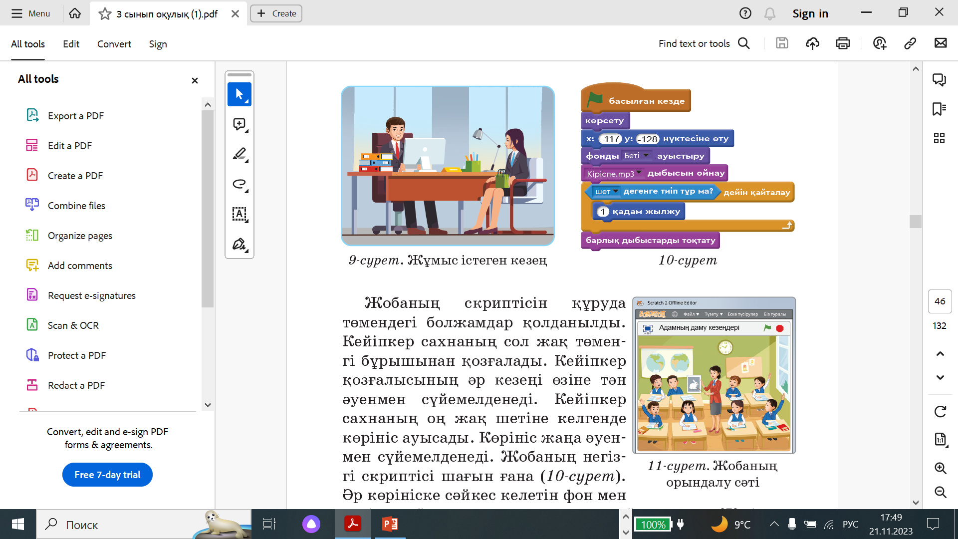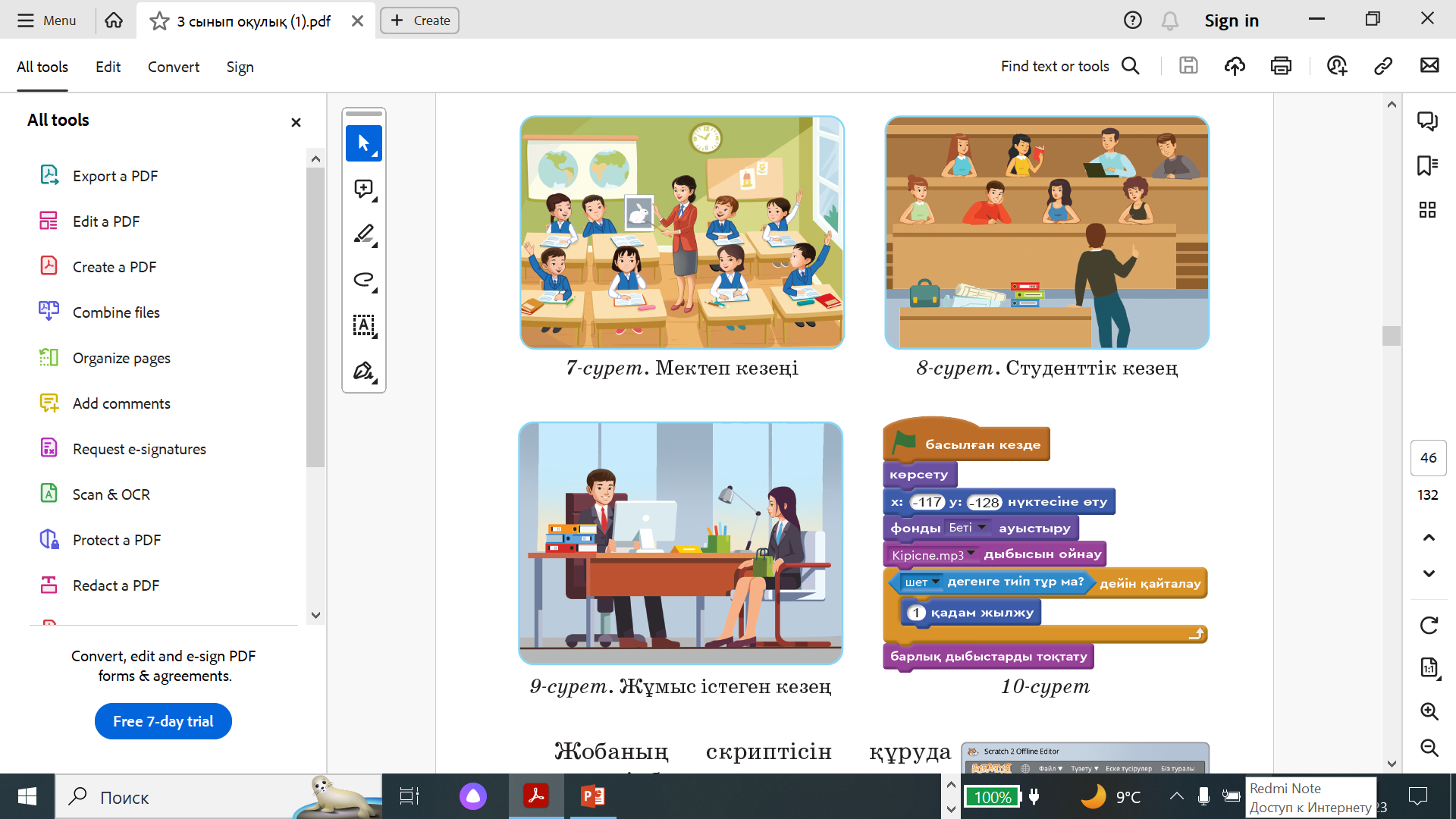 Оқушылар оқулықта берілген скриптіні пайдалана отырып, Scratch ортасында жоба жасайды. ЕББҚ ететін оқушы берілген тапсырманы өз бетінше орындайды |