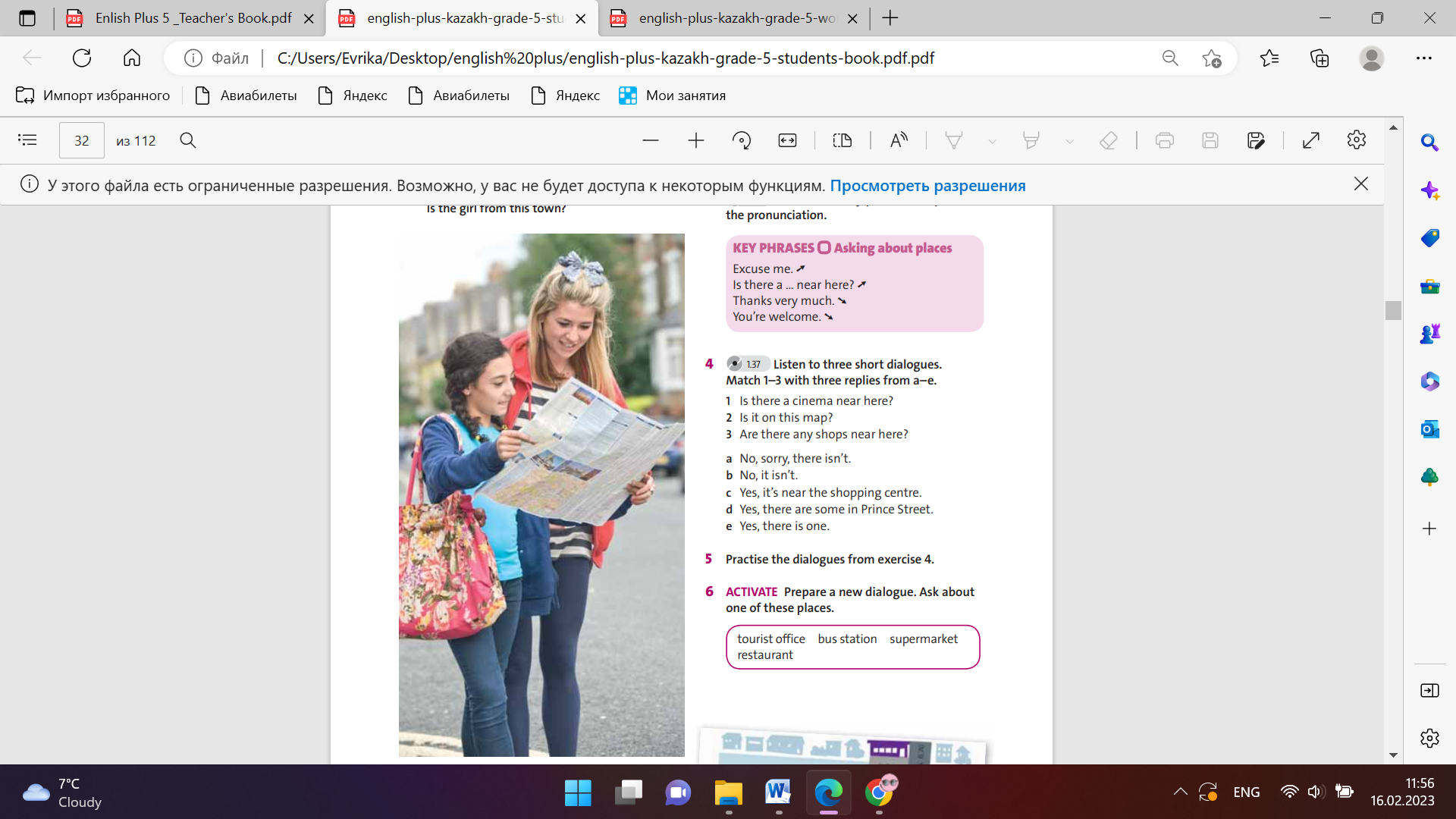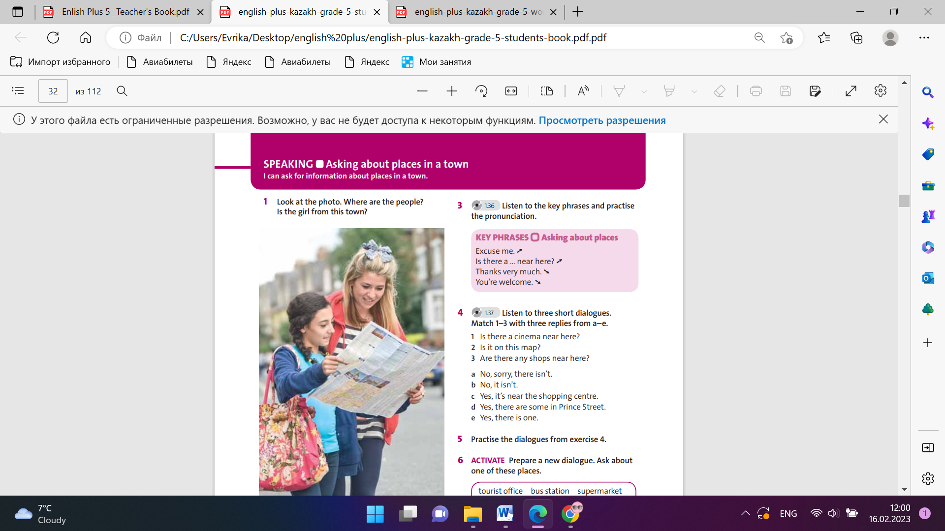 Differentiation: «Verbal support» method is used to help Students use new words in the text. Ex: 2 P:33 • Refer students to the example and do the task together as a class. Point out that we use also to give further information about something. It helps to link two things together and makes descriptions sound more natural. • Students find the other example of also in the text LANGUAGE NOTE While also comes after the verb be, it usually comes before all other verbs. For example, I also like to play football or She also eats a lot of chocolate. Ex: 3 P:33 • Refer students to the sentences and explain the task. Students check answers in pairs. Ex: 4 P:33 • Draw students’ attention to the key phrases that can be used to describe a town or a city. Read through them with the class and check for understanding. • Tell students to think about their own town or city and explain the task. Check answers as a class. |