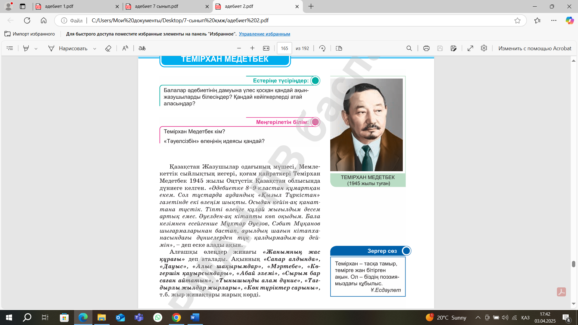 Сынып: 7 қазақ әдебиеті |