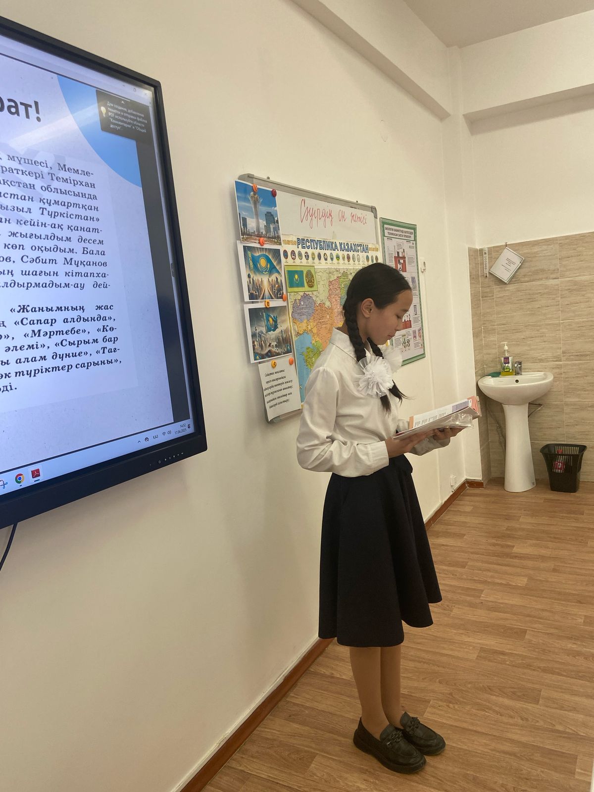 Сұрақтарға жауап береді; Мұғалім ұсынған бағалаумен танысады; Үй тапсырмасындағы үзінді бойынша сұрақтар қояды, үй тапсырмасын түсініп алады; Бағалау критерийлері бойынша рефлексия береді. «Айқын пікір» стикеріне бағалау критерийлеріне сәйкес білім алушы сабақтағы әрекеттеріне, жетістіктері немесе үйренгеніне қысқаша әрі нақты тоқталып жазады.