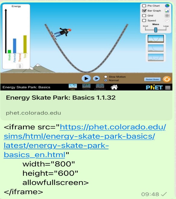 Оқулықтан Механикалық энергия тақырыбын оқып, Тірек сызба бойынша Механикалық энергияның жіктелуін жазып топпен қорғайды. 2- топ Кинетикалық , Потенциалдық энергия тобы PNET программасында механикалық энергиянының түрленуіне зерттеу https://phet.colorado.edu/sims/html/energy-skate-park-basics/latest/energy-skate-park-basics_en.html"