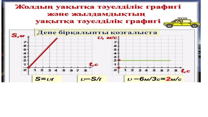 2-тапсырма Мағынаны тану Сұрақтар қою арқылы ой қозғау. Жетелеуші сұрақтар арқылы сабақтың тақырыбын ашу. 1. Қандай қозғалысты байқап тұрмыз? 2. Мына екі суреттің арасында қандай байланыс бар? 3. Графиктерімен жұмыс жасайды. 3- тапсырма