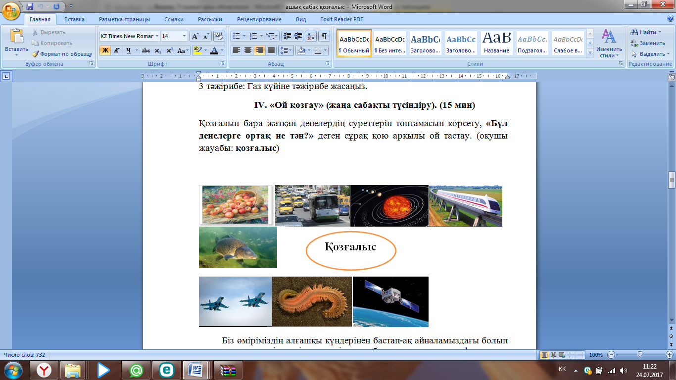 Синтез VІ. «Ойлан, тап!» (сабақты бекіту). (5 мин) Қозғалып келе жатқан жолаушылар поезының вагонындағы үстелде кітап жатыр. Кітап. 1. үстелге, рельске 3. телеграф бағаналарына, жерге қатысты тыныштықта тұра ма, әлде қозғалыста ма?