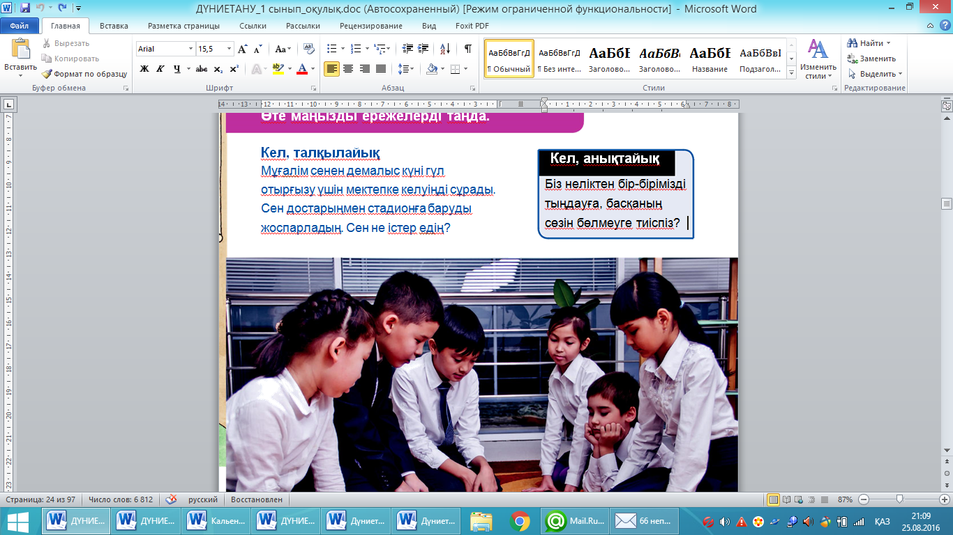 Кейбір оқушылар: мектеп ережелерін сақтауға үйрену. |