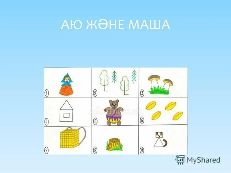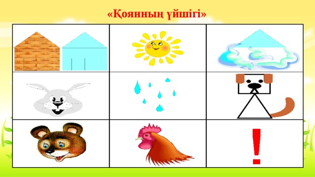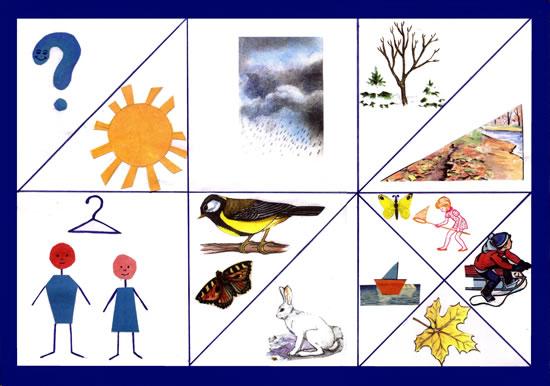 Мысалы: түлкі-тоқсары, геометриалық пішіннен тұрады. (үшбұрыш,шеңбер) аю — үлкен қоңыр шеңбер, т.б.