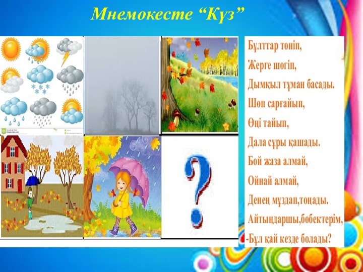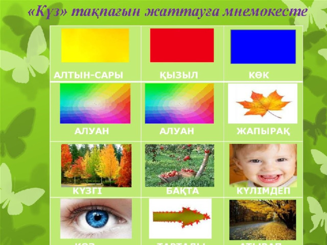 Кіші және орта балабақша жасындағы балаларға түрлі-түсті мнемокесте