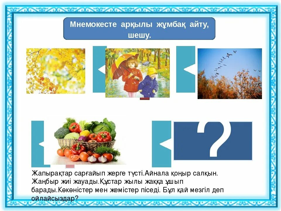 2. Үлкендер тақпақты өзі жатқа айтып, мнемокесте арқылы тағыда оқып