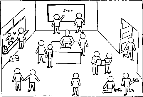 Оқушы үшін «Ұстаз кім?» деген тақырыпта эссе жазғызу. Өзінің ұстаздарға қаншалықты жақын екендіктерін анықтау үшін төмендегі парақтағы суретті тарату. Мұғалімді, өзін және достарын белгілету. Сол арқылы өзіне деген сенімділігін байқау, өзін ортада қалай сезінетіндігін, ұстаздарға қаншалықты етене жүретіндіктерін көреміз.
