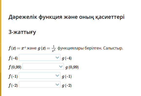 1-тапсырма: Функцияның мәндерін салыстырындар