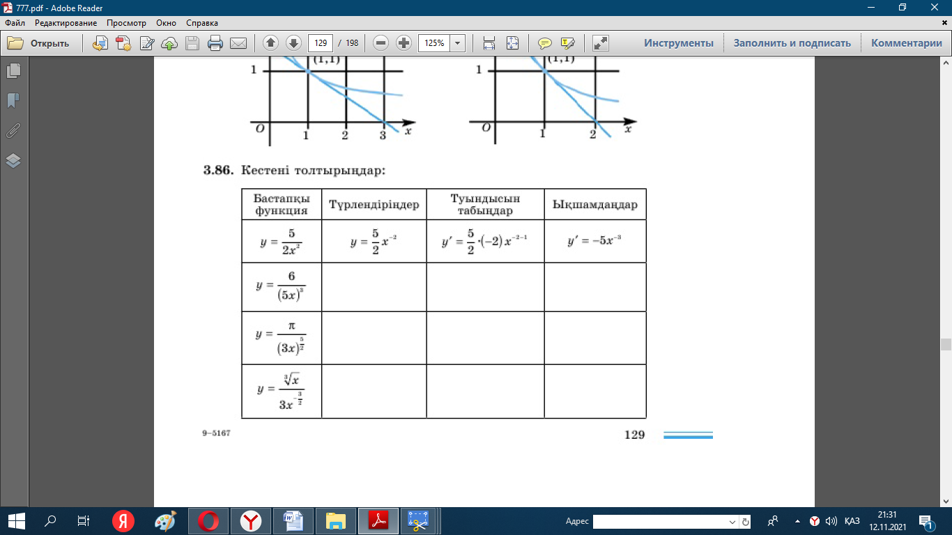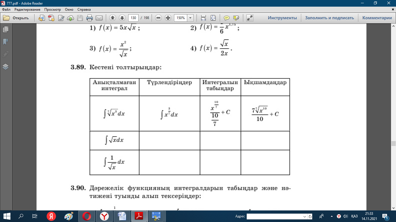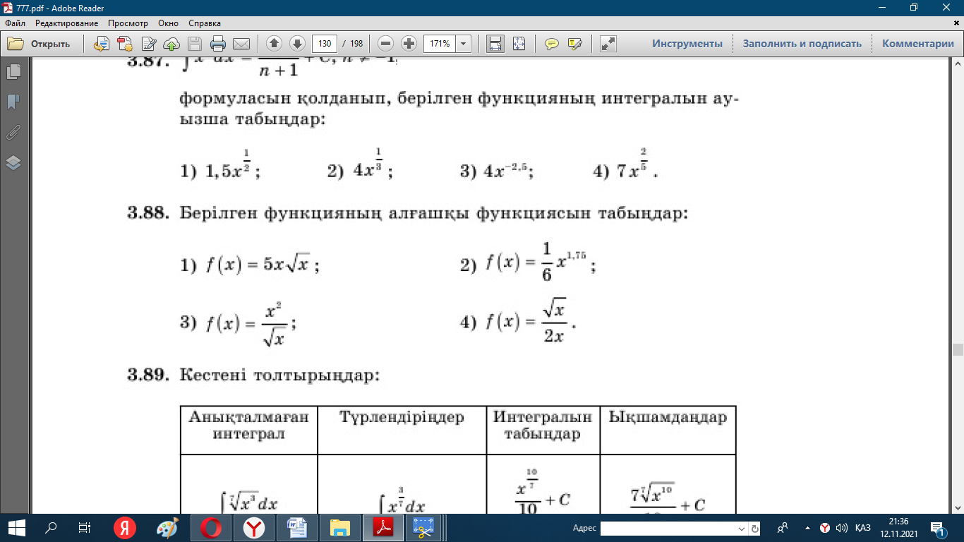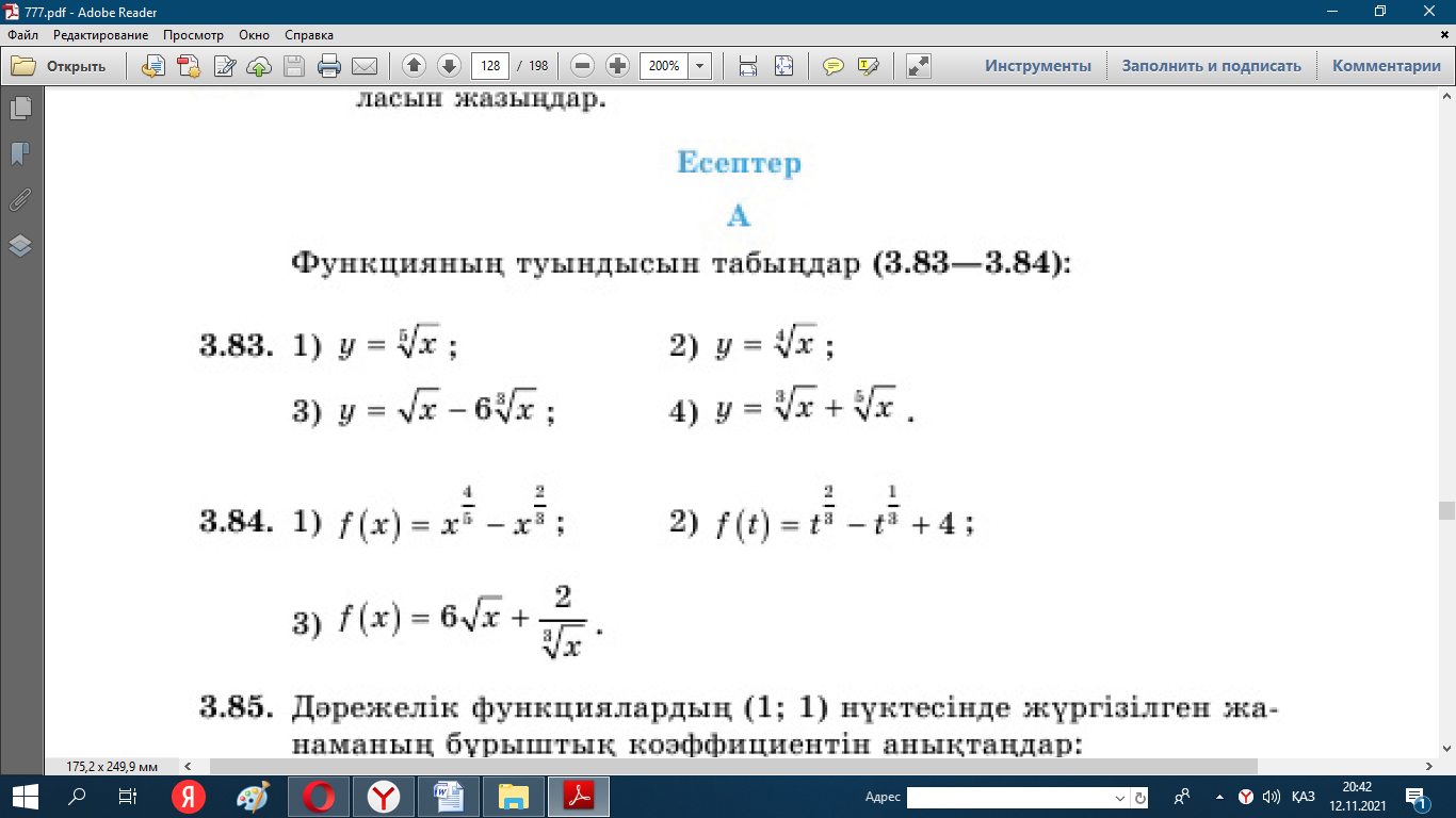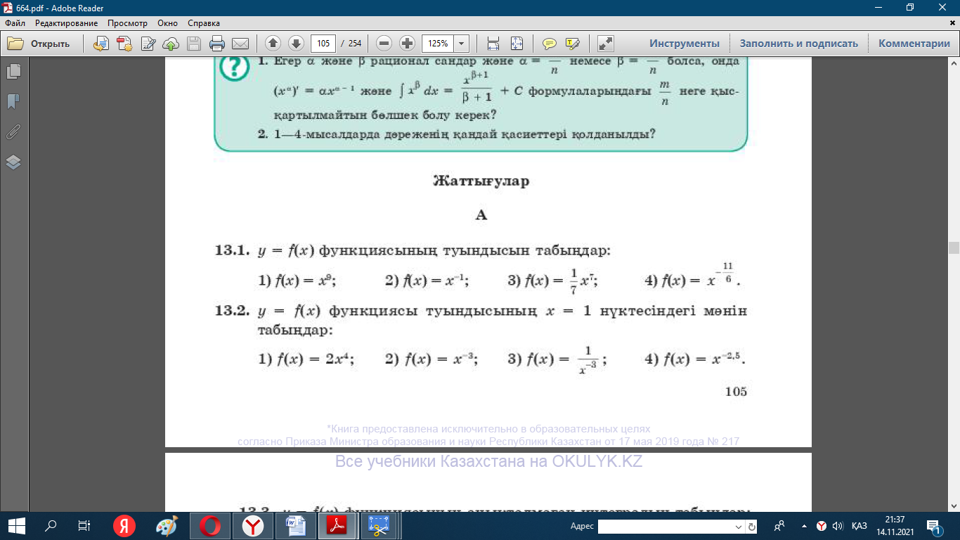 11.3.1.12 - нақты көрсеткішті дәрежелік функцияның туындысын табу ережелерін білу және қолдану; 11.3.1.13 - нақты көрсеткішті дәрежелік функцияның интегралын табу ережелерін білу және қолдану; |