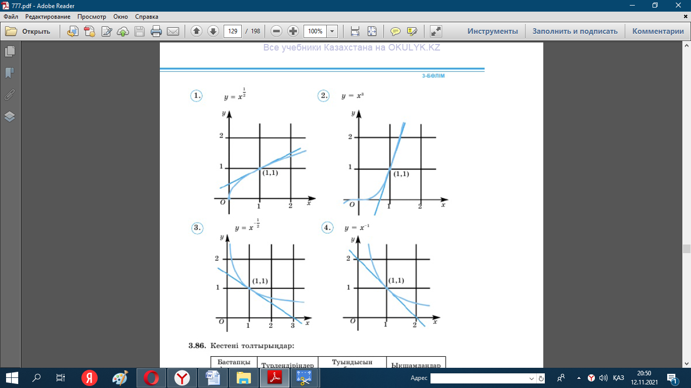 2-тапсырма Дәрежелік функциялардың (1;1) нүктесінде жүргізілген жанаманың бұрыштық коэффициентін анықтаңдар: