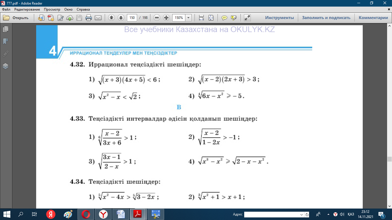 Иррационал теңдеулер мен теңсіздіктер бөліміне есептер шығару |