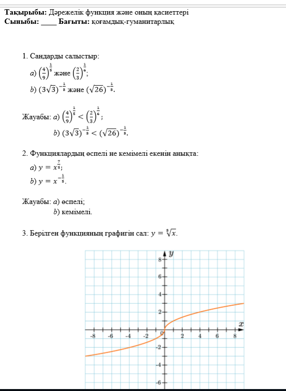 Сабақтың тақырыбы: Дәрежелік функция және оның қасиеттері