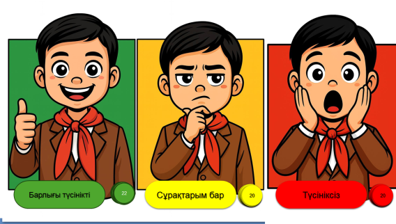 Сабақтың басы Сабақтың ортасы Сабақтың соңы |