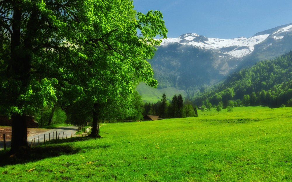Балалар табиғатты, туған елін сипаттап сахнада бейнелейді. Біреуі тауды, біреуі даланы, біреуі өзенді сомдайды.)