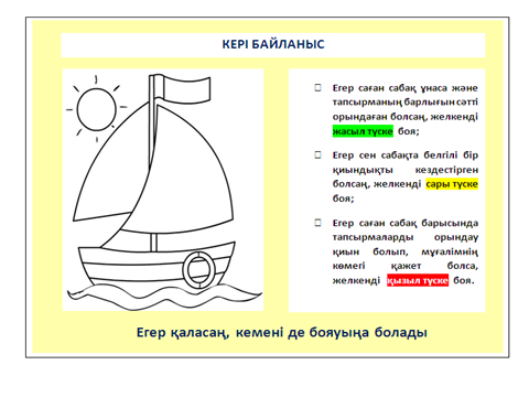 Таңғы шеңбер: Қайырлы таң, достым! Қайырлы күн болсын! Бүгінгі күн міне Сәттілікке толсын! І тапсырма: Жаңа тақырыпқа шығу. (МК;Ұ) «Ұйқасын тап» ойыны (Ұ)-Балалар, сендер ойын ойнағанды жақсы көресіңдер ме? -Ендеше қазір сендермен ойын ойнаймыз. Мен сендерге басын айтамын, ал сендер ұйқас сөзді тауып аяқтау керексіңдер.. -Ра,ра,ра оқулыққа ..... Қы,қы,қы мәтінді ...... Аз,аз,аз, дәптеріңе ..... Ер, ер, ер, сұраққа жауап ..... Қы,қы,қы сабағыңды .... Ол, ол, ол-жақсы бала ..... Оқушының іс-әрекеті: Мақсаты. Тілдік емес амалдарды (интонация, мимика, қол қимылдары, дене қимылдары) ауызша сөйлесуде қолдануы. Дескриптор: оқиды, ұйқасын табады. Өлең екенін айтады. Хормен, әндетіп те оқиды. Бағалау: «Фейерверк» әдісі арқылы қолдаймын. -Жарайсыңдар, балалар. Балалар, бүгін біз К,к дыбысы мен әрпімен танысамыз. ІІ. «Галлерея әдісі арқылы К,к дыбысы мен әрпімен таныстырам. Топқа бөлу:стикерлердің түстеріне байланысты. Оқушыларға сұрақ қойылады. Осы сөздерде қандай әріп және дыбыс кездеседі? Балалар, қарап тұрсақ К әріпі мен к дыбысы сөздін басында, сөздің ортасында, сөздің соныңда кездеседі екен. Әр топ «планшет» арқылы жұмыс жасайды. 1 топ –К әріпі сөздін басында тұрған сөздерді планшетқа буындап жазасыңдар. ІІ топ - К әріпі сөздін ортасында тұрған сөздерді планшетқа буындап жазасыңдар. ІІІ топ - К әріпі сөздін сонында тұрған сөздерді планшетқа буындап жазасыңдар. Шығармашылық тапсырма: әр екі сөзбен сөйлем құрастыру. Мақсаты:тіл бірліктері (дыбыс, буын, сөз, сөйлем) туралы ұғымдары мен түсініктерін кеңейту. Дескриптор: дыбыстарды ажыратады, буынға бөліп жазады, сөйлем құрастырады.. Бағалау: Топтар бірін-бірі бағалайды. |