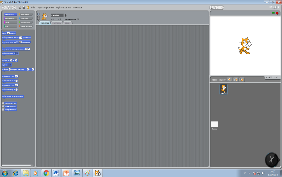 Scractch ортасының интерфейсімен танысу. Практикалық жұмыс