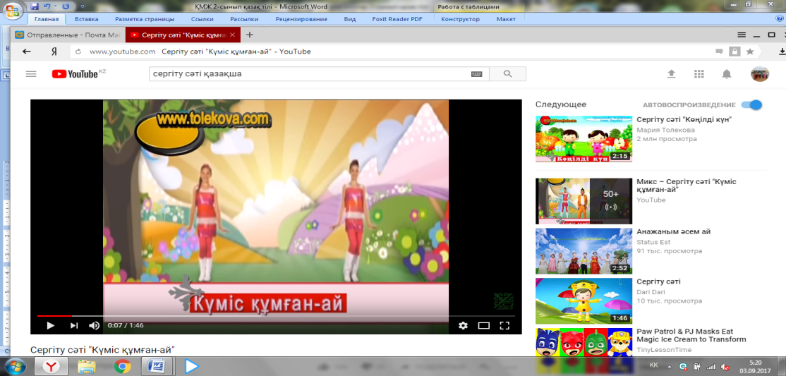 Сергіту сәті 2 минут |