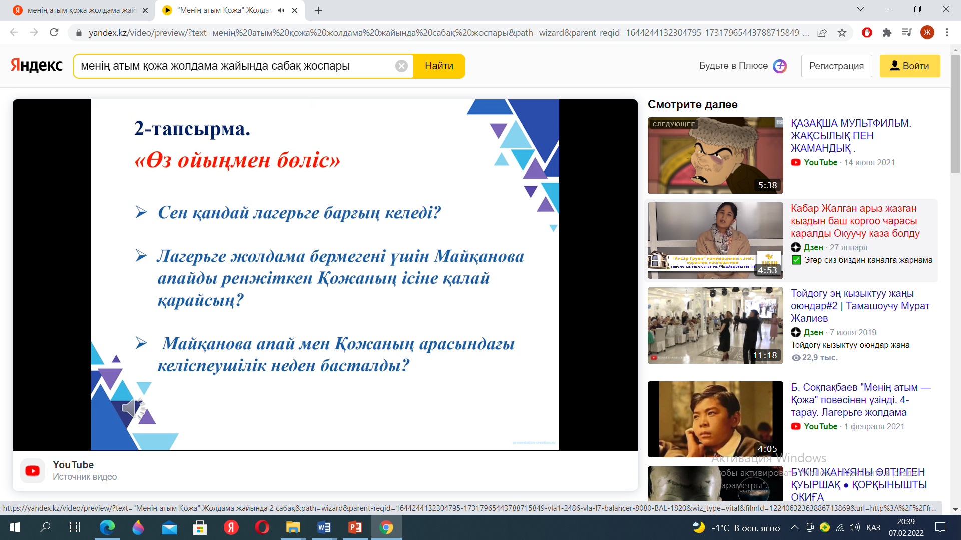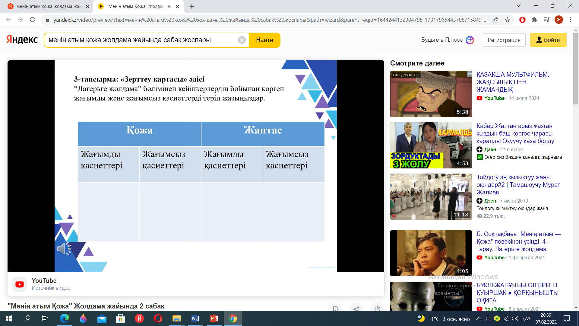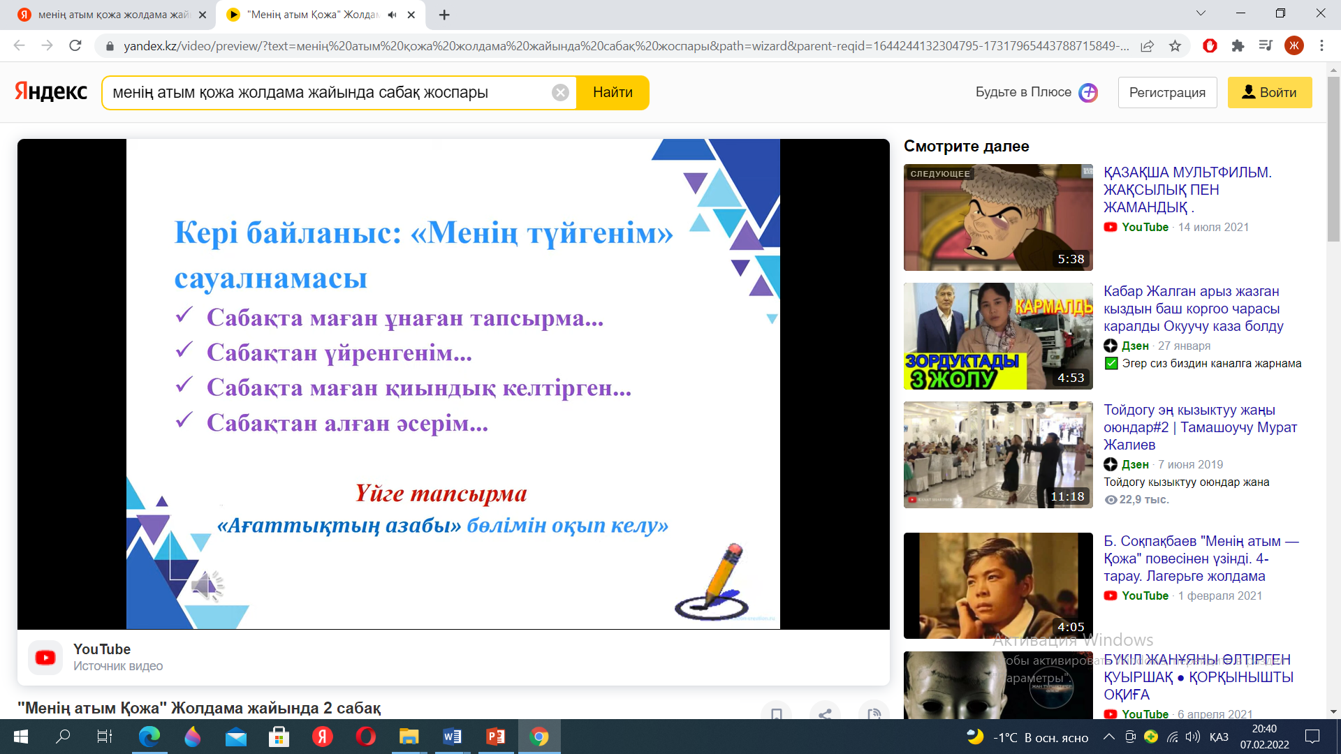 Сабақтың басы Қызығушы лықты ояту 7 мин. |