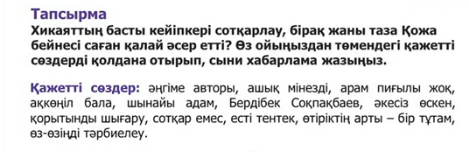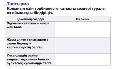 Дексриптор: -Қожаның іс-әрекетін талдайды -өз ойын білдіреді