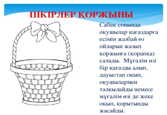 5. . Қазақстанда дизайнерлер одағы қашан құрылды? 1987 ж. Қазақстан Дизайнерлер одағы құрылды. Оқушылар үй тапсырмасын күнделіктеріне жазып алады. «Пікірлер қоржынымен» оқушылар өз пікірлерін жазып,қоржынға салып,сабақ қорытындыланады. |