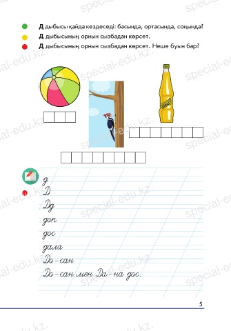 Д дыбысын жазып көр. Сөздерді ата, дыбыс құрамын айт.
