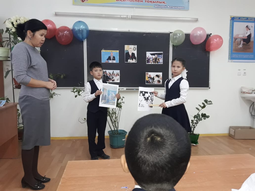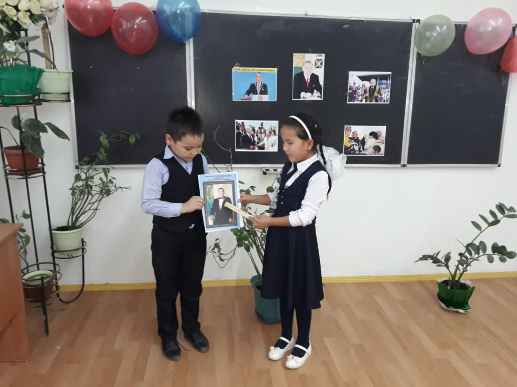 Қазақстан дейтін менің бар елім . Жатыр алып жарты дүние әлемін! Бұл даланы анам жаспен суарған, Бұл далада атам қолға ту алған, Бұл далада жылап келіп, уанған Бұл даланы көріп алғаш қуанған Бұл далада өскен жанда жоқ арман!-дей келе Мектебіміздің оқушылары сомдаған Елбасымыз Нұрсұлтан Әбішұлы Назарбаевтың балалық шағынан шағын әңгімені тамашалаңыздар