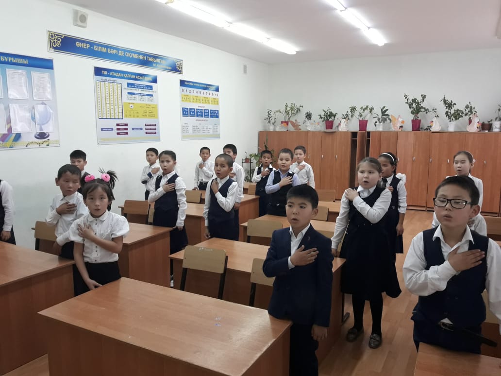 Қазақстан республикасының әнұраны :балалар әнұранды айтады