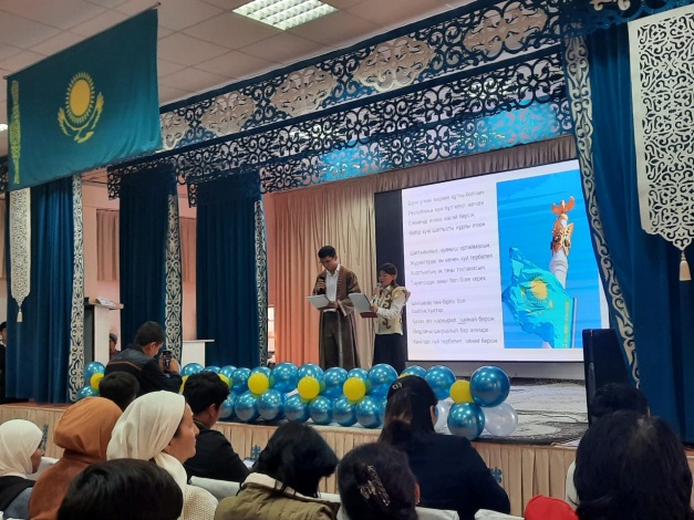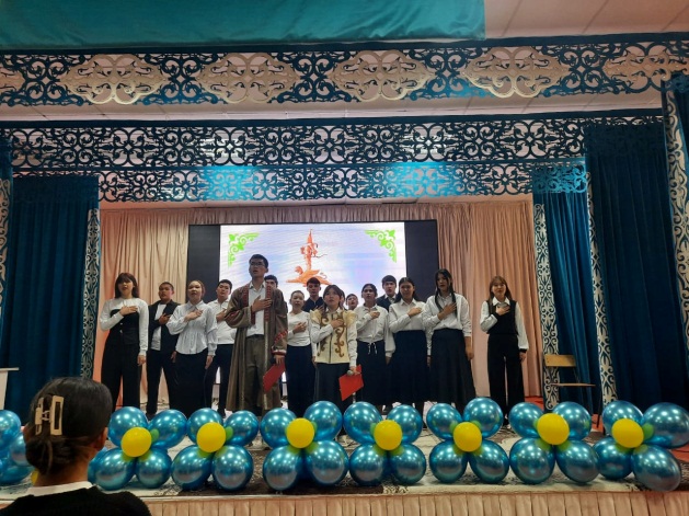 Республика күнінің мәні мен маңызын, Отанға деген сүйіспеншілігін арттыру ,Тәуелсіздік құндылықтарын құрметтеуге тәрбиелеу.Тәрбие сағаты ҚР әнұранымен басталып,студенттеріміз Алаш зиялыларының образдарына еніп, жыр шумақтары айтылып, мың бұралған ару қыздарымыздың биіне ұласты.