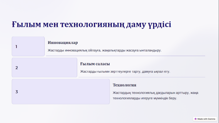 Қорытынды: Ертеңгі күнге деген сенім Біздің болашақ - бұл жастар. Олардың білім алуы, дамуы, қоғамға белсенді қатысуы - біздің еліміздің тұрақты дамуының кепілі. |
