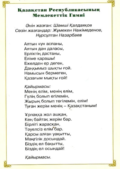 Еліміздің басты нышаны әнұранмен сабағымызды бастаймыз
